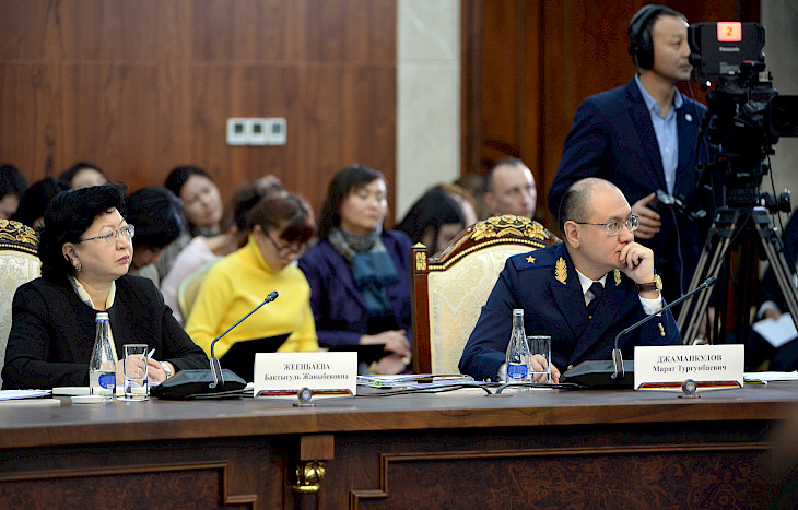 Жыйында вице-премьер-министр Жеңиш Разаковдун, башкы прокурор Өткүрбек Жамшитовдун, Жогорку соттун төрайымы Гульбара Калиеванын, ички иштер министри Кашкар Жунушалиевдин, юстиция министри Марат Жаманкуловдун, Экономикалык кылмыштар менен күрөшүү мамлекеттик кызматынын төрагасы Бакир Таировдун жаңы кодекстердин жана мыйзамдардын нормаларын пайдалануу маселелери, ошондой эле жаңы мыйзамдарды өркүндөтүүгө багытталган жаңы мыйзам долбоорлорун иштеп чыгуу жана жылдыруу боюнча докладдары угулган.