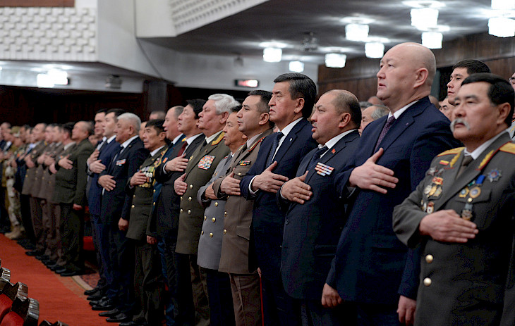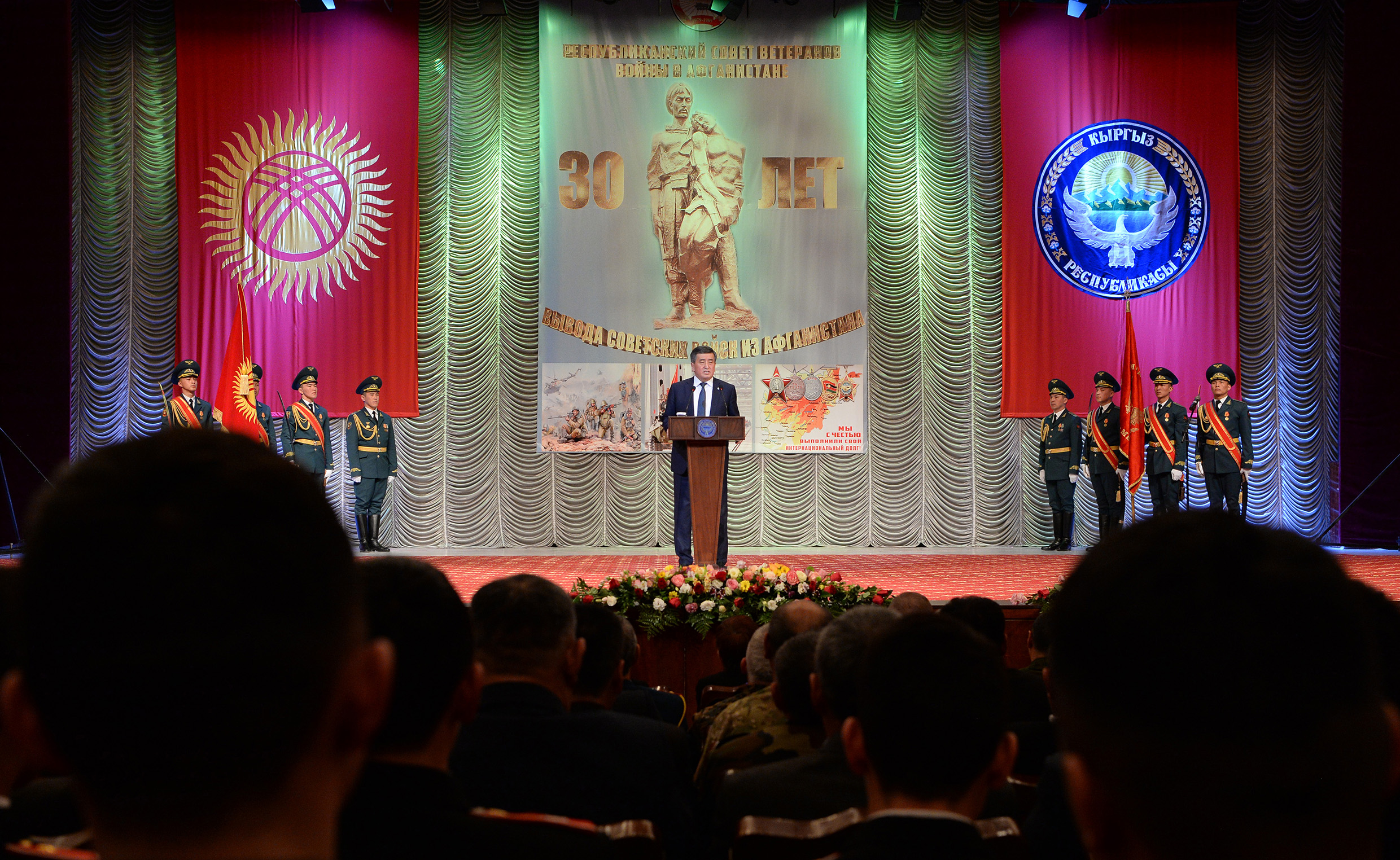 Бишкек, 15.02.19 /Кабар/. Президент, Куралдуу Күчтөрдүн башкы командачысы Сооронбай Жээнбеков бүгүн, 15-февралда Советтик аскерлердин Афганистандан чыгарылышынын 30 жылдыгына арналган салтанаттуу иш чарага катышты.