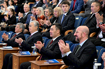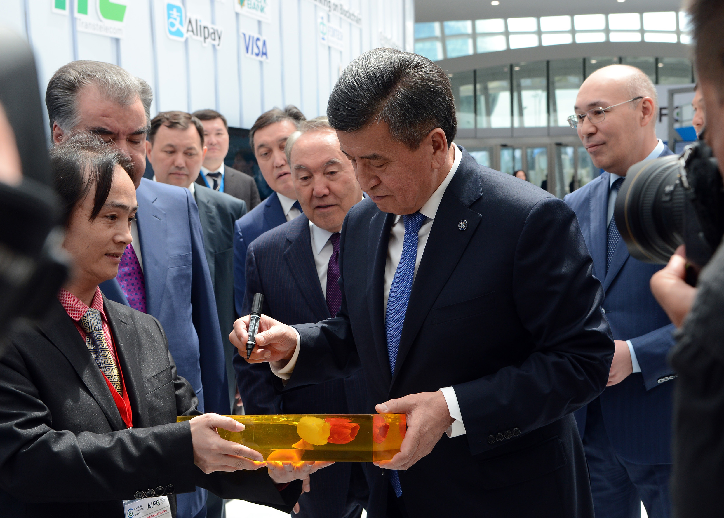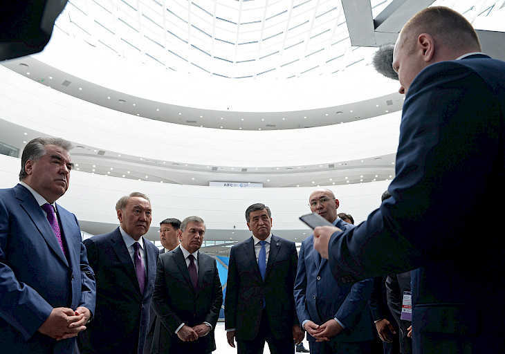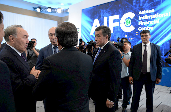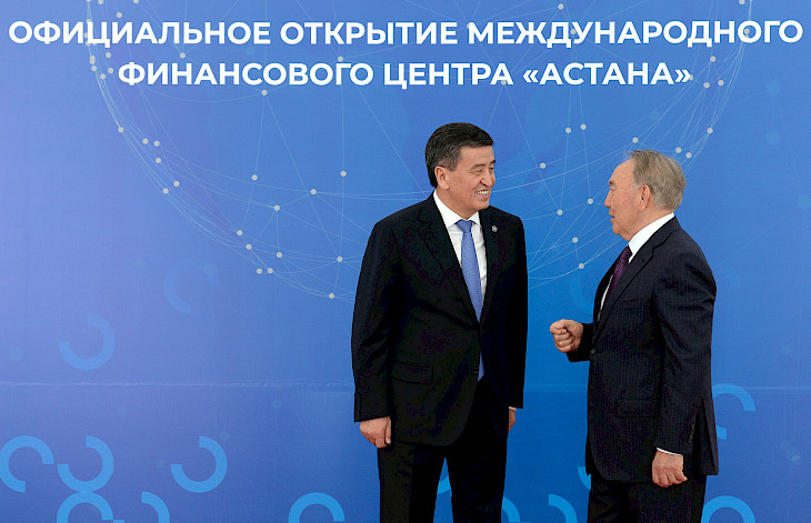 Президент Сооронбай Жээнбеков Казакстандын Президенти Нурсултан Назарбаев, Өзбекстандын Президенти Шавкат Мирзиёев жана Тажикстандын Президенти Эмомали Рахмон менен биргеликте «Астана» Эл аралык финансы борборуна барды. Бул борбор кечээ, 5-июлда расмий ачылган.