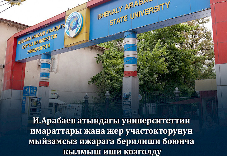 Текшерүүдө И.Арабаев атындагы КМУнун жооптуу кызмат адамдары жана Мамлекеттик мүлктү башкаруу боюнча фонддун алдындагы "Аукциондук борбор" ММнин мурдагы башчысы С.И. тарабынан 2018-жылдан 2022-жылга чейин аталган окуу жайга караштуу мамлекеттик имараттарды жана жер участокторун эч бир келишим түзбөстөн, өздөрүнө пайда табуу максатында жеке жана юридикалык жактарга ижарага беришип, мамлекетке ири өлчөмдө зыян келтирилгендиги аныкталган.