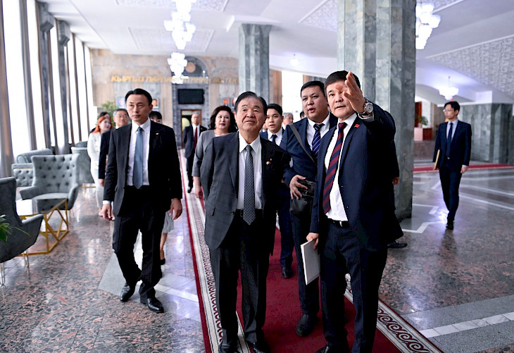 Иш сапарынын алкагында Япония парламентинин делегациясы Жогорку Кеңештин ишмердүүлүгү менен таанышып, жыйындар өтүүчү залдарды көрдү.