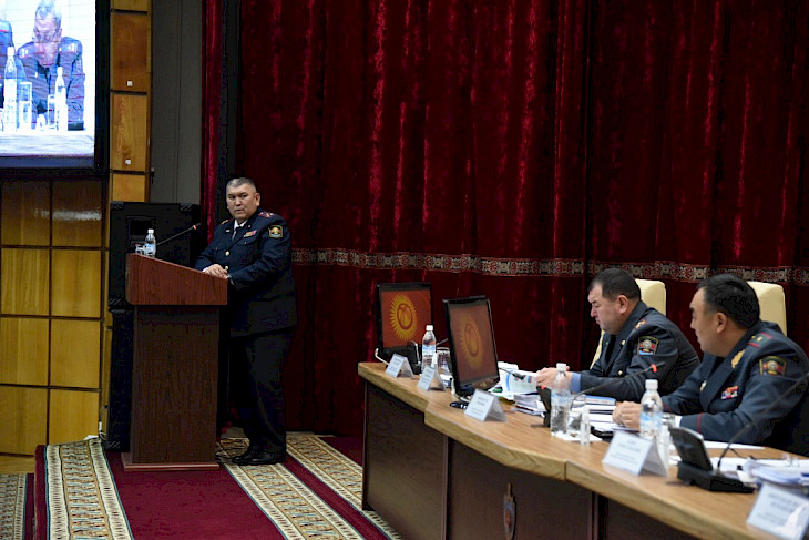 Бишкек, 13.11.21. /Кабар/. 12-ноябрда Ички иштер министрлигинин жыйындар залында КР ички иштер органдарынын 2021-жылдын 9 ай ичинде аткарган ыкчам-кызматтык ишмердүүлүгүнүн жыйынтыгын чыгарган коллегиялык отурум өттү.