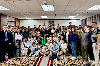 "Гүл койгондон кийин коноктор музейге барышып, аларды окуу жайдын тарыхы, калыптанган мыкты салттары жана профессордук-окутуучулук курам менен тааныштырышты. Андан соң, конокторду конференц-залда ИИМдин Академиясынын 50 жылдыгына карата конференцияны өткөрүү үчүн окутуучулар, курсанттар, студенттер тосуп алышты", - деп айтылат билдирүүдө.
