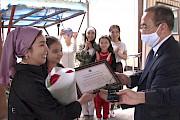 Эмгеги жана таланты менен мекендештеринен өзгөчөлөнгөн кыргызстандыктардын энелерине Президенттин Аппаратынын кызматкерлери жана Талас, Ысык-Көл, Ош, Баткен облустарынын жетекчилери куттуктоолорун жана белектерин тапшырышты.