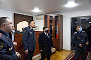 Жыйынга чейин Акылбек Жапаровду ИИМдин командалык борборунун иши менен тааныштырышты. Кызматтык унааларды, көчмө портативдик радиостанцияларды жана патрулдук милициянын атайын техникасынын көптөгөн үлгүлөрүн көрсөтүштү.