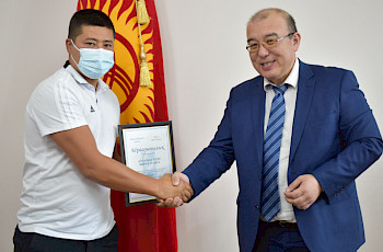 Бишкек, 17.06.21. /Кабар/. 2021-жылдын 17-июнь күнү Ички иштер министринин атынан ИИМ Академиясынын начальнигинин орун басары, милициянын полковниги Касымбаев Ильяс Талипович “Аламүдүн-1” кичирайонундагы каналда катуу ылдамдыкта аккан суудан агып бара жаткан кызды куткарышкан Бишкек шаарынын тургунуна, ИИМ Академиясынын кызматкерине жана курсанттарына сыйлык тапшырды. Бул тууралуу ИИМ Академиясынын басма сөз кызматы билдирди.