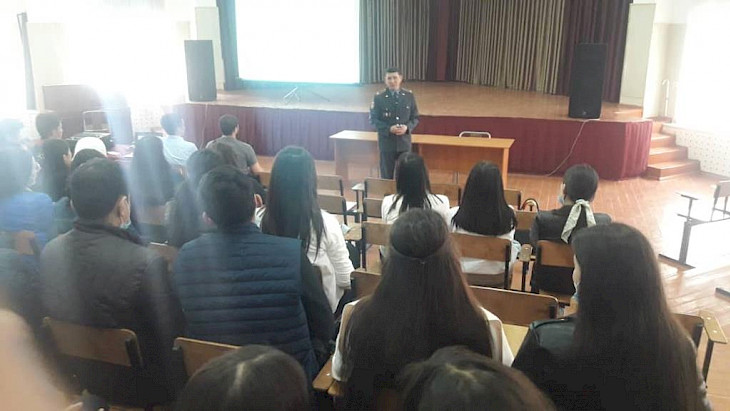 Бишкек шаарынын №72 мектеп-гимназиясынын жогорку класстарынын окуучуларына Кылмыш жаза жана кылмыштарды алдын алуу кафедрасынын доценти, милициянын подполковниги Б. Жеңишов, Жарандык укуктар сабактар кафедрасынын профессору, милициянын подполковниги Л. Момуналиева жана автодаярдык борборунун улук инспектору милициянын улук лейтенанты Т.Мадалиев лекцияларды окушуп, анда ар түрдүү кылмыштарды жасагандыгы үчүн жашы жете элек өспүрүмдөрдүн жоопкерчилиги боюнча, интернет социалдык тармактарын пайдалануу менен жашы жете электерге карата жасалган кылмыштарга каршы аракеттенүү, жашы жете элек өспүрүмдөрдүн укуктары жана аларды кантип коргоо керектиги жөнүндө, ошондой эле коомдук жайларда, көчөлөрдө коопсуз жүрүм-турум эрежелери тууралуу кенен айтып беришти.