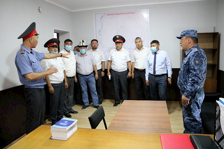 Андан соң, ички иштер министринин орун басары Октябрь Урмамбетов милиция бөлүмчөсүнүн имараты жана түзүлгөн шарттары менен жеринде таанышып чыгып, милиция бөлүмчөсү аталган аймактагы коомдук тартипти сактоодо, кылмыштуулук менен күрөшүүдө жана болтурбоодо, ар кандай алдын алуу иш-чараларын жүргүзүүдө натыйжа берерин айтып, кызматкерлерге эл менен жакындан иш алып баруу керектигин белгиледи. Ошондой эле РИИБдин өздүк курамы менен жолугушуп, кызматкерлерге шарт түзүүдө көрүлүп жаткан чаралар боюнча маалымат берүү менен бирге, бир катар тапшырмаларды да коюп өттү.