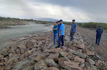 Куралдуу кагылышуу орун алган мамлекеттик чек аранын кыргыз-тажик тилкесинде жайгашкан айылдарды министрдин биринчи орун басары Сүйүн Өмүрзаков милициянын кайгуул топтору менен биргиликте кыдырып, жарандар менен жолугуп, коопсуздук маселелерин жеринде чечип, ар кандай укук бузууларга жол берөө керектигин түшүндүрүүдө.