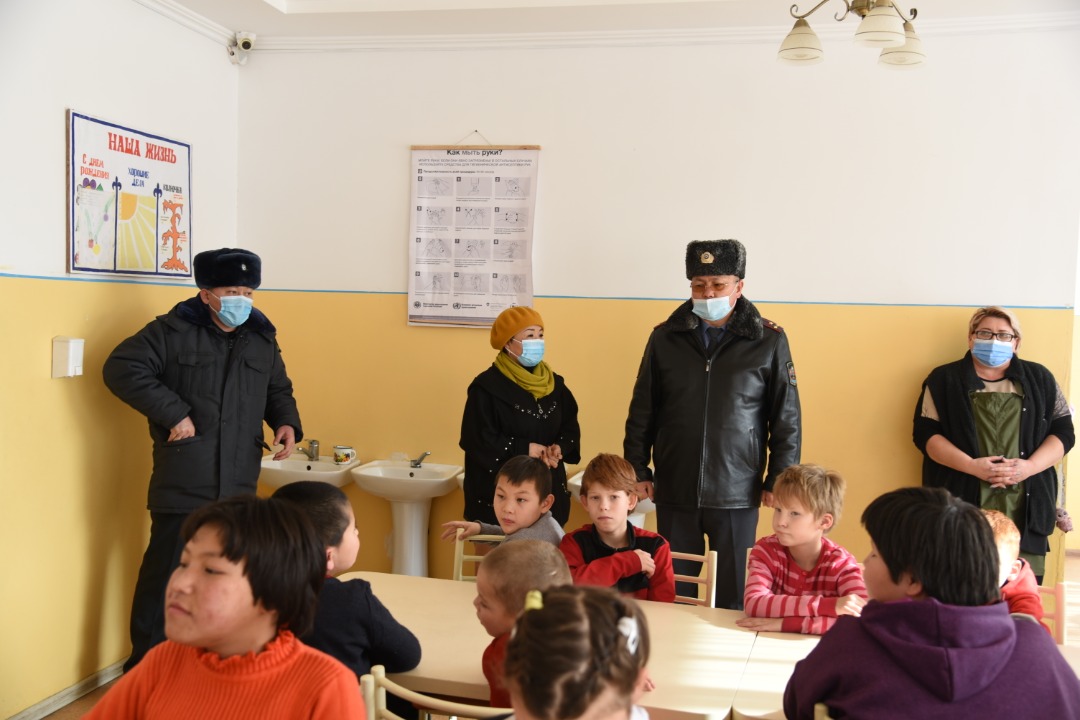 Милиция кызматкерлери мектеп-интернатынын тарбиялануучуларын, жумушчуларын жана мугалимдерин жаңы жылы менен куттуктап, аларга бекем ден соолукту, бейкуттукту, окууларына, спортто жана турмушунда ийгиликтерди каалашты.