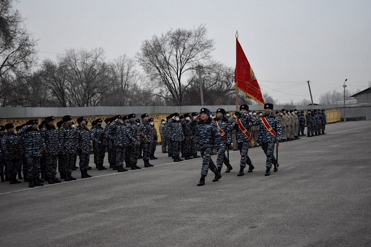Андан кийин полктун салтанаттуу күнү Ички иштер министрлигинин А.Шабиров атындагы республикалык окуу борборунун үч айлык алгачкы даярдоо курсун бүтүрүп кеген жаш кызматкерлердин ант берүүсү менен коштолду.