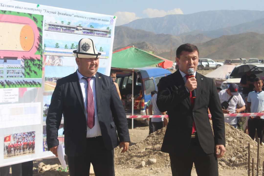 "Бабалардан калган улуттук ат оюндарын даңазалоо керектигин баса белгилеп, чындыгында эл сүйгөн, эл баалаган улуттук оюндарды көрүүгө шарт түзүлүшү керек. Буга чейин Баткен облусунда аталган оюндарды өткөрүү үчүн бизде талапка жооп бере турган ат майданы жок болгон. Бүгүн мына Кадамжай районунун Халмион айылында облуста спорттун улуттук түрлөрүн кайра жандандыруу жана өнүктүрүү менен зарыл шарттарды түзүү максатында Дене тарбия жана спорт департаментинин демилгеси менен ипподромдун курулушу башталып жатат", - деди облус башчысы өз сөзүндө.