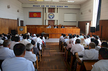 Мектеп окуучулары тарабынан жыйындын катышуучуларына суроолор берилип, канааттандырарлык жоопторду алышты.