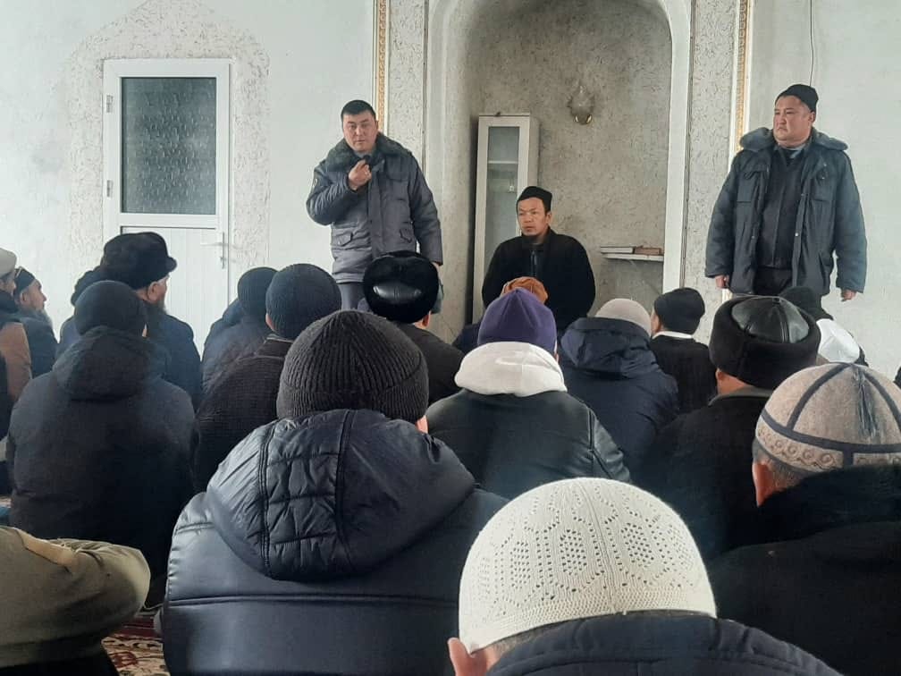 “Жума күнү жума намазы окулган мечиттерге милициянын кызматкерлери барып, элдин калың катмарына адам каза болгондогу ашыкча чыгымдар боюнча кеңири түшүнүктөрдү беришип, талкуулар жүрдү”, - деп айтылат билдирүүдө.