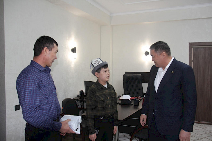 Ал эми Камчыбек Ташиев балага чың ден соолук, үй-бүлөлүк бакыт каалап, келечекте коопсуздук кызматкерлеринин катарын толуктайт деген ишенимин билдирди.