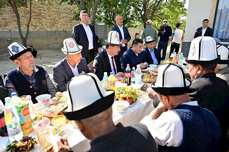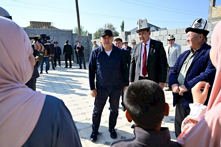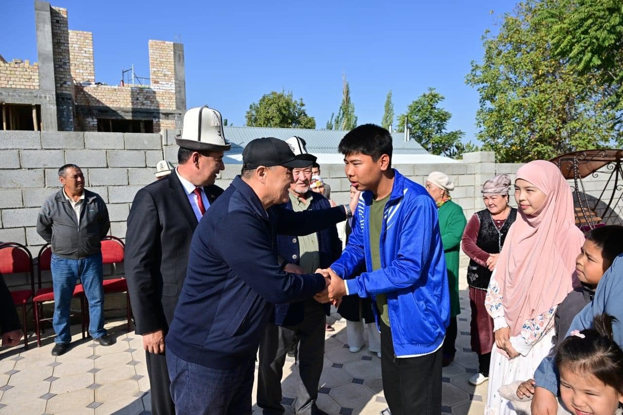 Андан соң Мады айылынын тургуну Салмоорбек Утуровго да айылдыктардын катышуусунда жаңы турак үйдүн ачкычын Камчыбек Ташиев тапшырды.