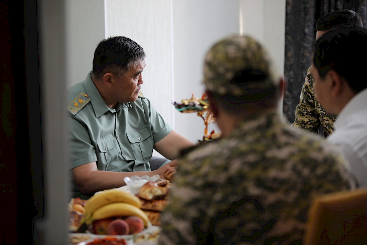 Камчыбек Ташиев сөз сүйлөп, мамлекет жетекчилиги тарабынан кыргыз армиясы үчүн, анын ичинде чек ара кызматын күчтөндүрүү, заманбап курал-жарак, аскердик техникалар менен камсыз кылуу, аскерлердин кызматтык жана жашоо шартын жакшыртуу багытында аткарылып жаткан олуттуу жумуштар тууралуу кыскача айтып өттү.