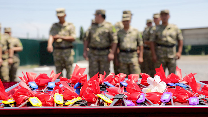 Бишкек, 14.06.23. /Кабар/. Бүгүн Улуттук коопсуздук боюнча мамлекеттик комитеттин төрагасы Камчыбек Ташиев Жалал-Абадда чек арачылар үчүн курулган жаңы турак үйдүн ачкычтарын тапшырды.