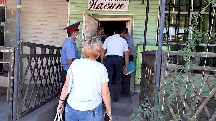 Маалыматка ылайык, ыкчам штабдын мүчөлөрү соода борборлорунда, коомдук тамактануу жайларында, базарларда санитардык-гигиеналык талаптардын аткарылышын текшерди.