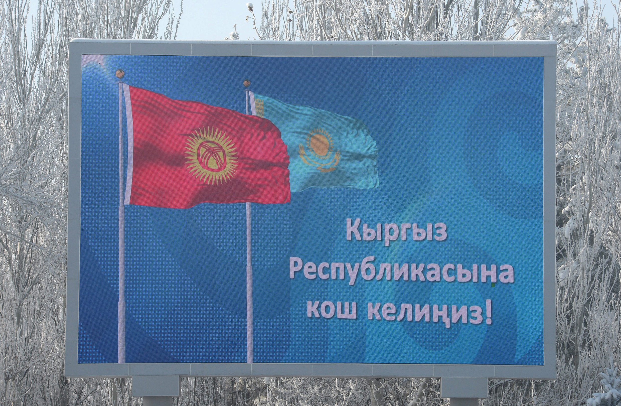 Аэропортто Кыргыз Республикасынын жана Казакстан Республикасынын мамлекеттик желектери илинип, Ардактуу кароол тизилген.