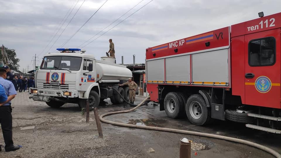 Маалыматка ылайык, базардын аймагындагы эки эки кабаттуу контейнерлерден чыккан өрт саат 11:32де чектөөгө алынды.