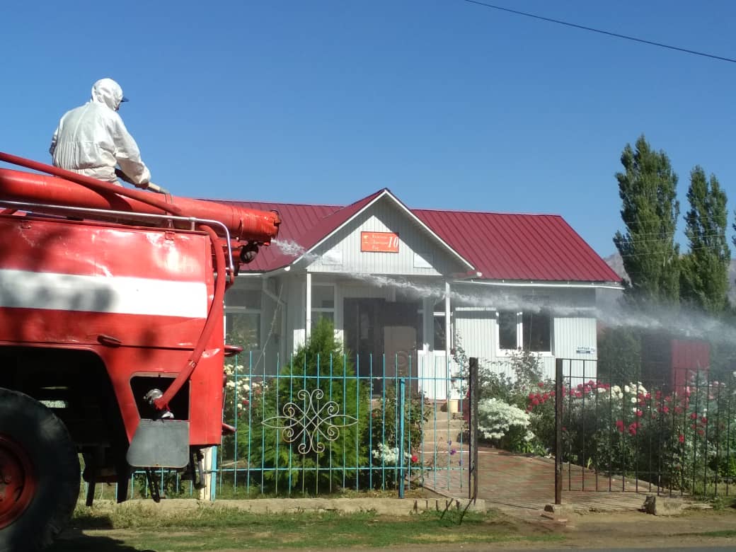 Маалыматка ылайык, кечээ, 19-августта өлкө боюнча 26 550 м² имараттардын ичи-сырты, 27 400 погондук метр унаа жолу дезинфекцияланып, иш-чарага 53 куткаруучу тартылган.