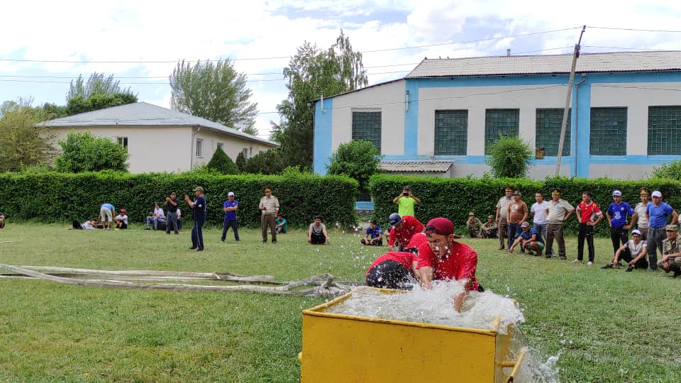 Иш-чарага өрт өчүрүү-куткаруучулар жана Өрт коопсуздугу боюнча кафедрасынын студенттери өрт колдонмо спорту боюнча өнөрлөрүн сынашты.