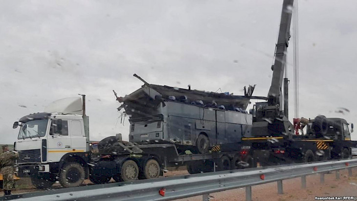 Такталган маалыматтарга ылайык, Казакстандын Жамбыл облусунда болгон кырсыктан Өзбекстандын үч жараны каза болуп, дагы 13ү түрдүү жаракаттары менен жергиликтүү ооруканага жеткирилген. Учурда алардын үчөөсүнүн абалы өтө оор экени кабарланууда.
