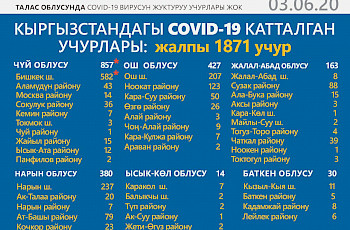 Белгилей кетсек, азыркы тапта өлкөдө коронавирус жуктурган учурлардын саны 11 миң 977ге жетти. Алардын ичинен 1980и медицина кызматкери. Илдеттен жалпы 5314 (үй изоляциясынан 1654) жаран айыкса, коронавирус жуктурган 160 адам каза болду.