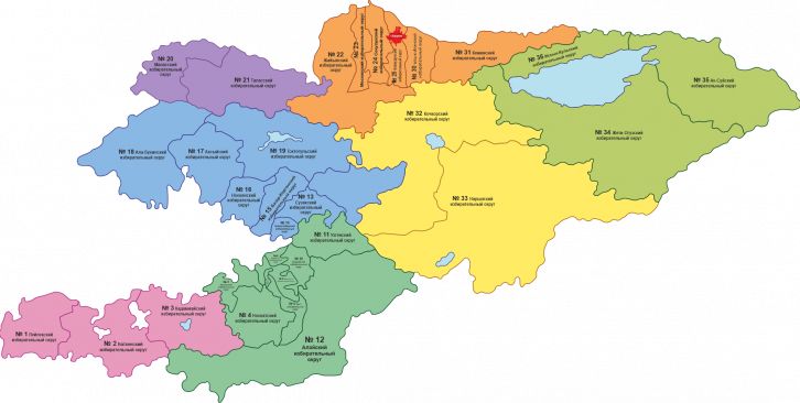 Бишкек, 13.09.21. /Кабар/. Кыргыз Республикасынын Шайлоо жана референдум өткөрүү боюнча борбордук комиссиясы «Кыргыз Республикасынын президентин жана Жогорку Кеңешинин депутаттарын шайлоо жөнүндө» КР конституциялык мыйзамына ылайык мажоритардык шайлоо тутуму боюнча шайлоо округдарынын расмий схемасын жана чек араларын жарыялады. Бул тууралуу БШКнын басма сөз кызматы билдирет.
