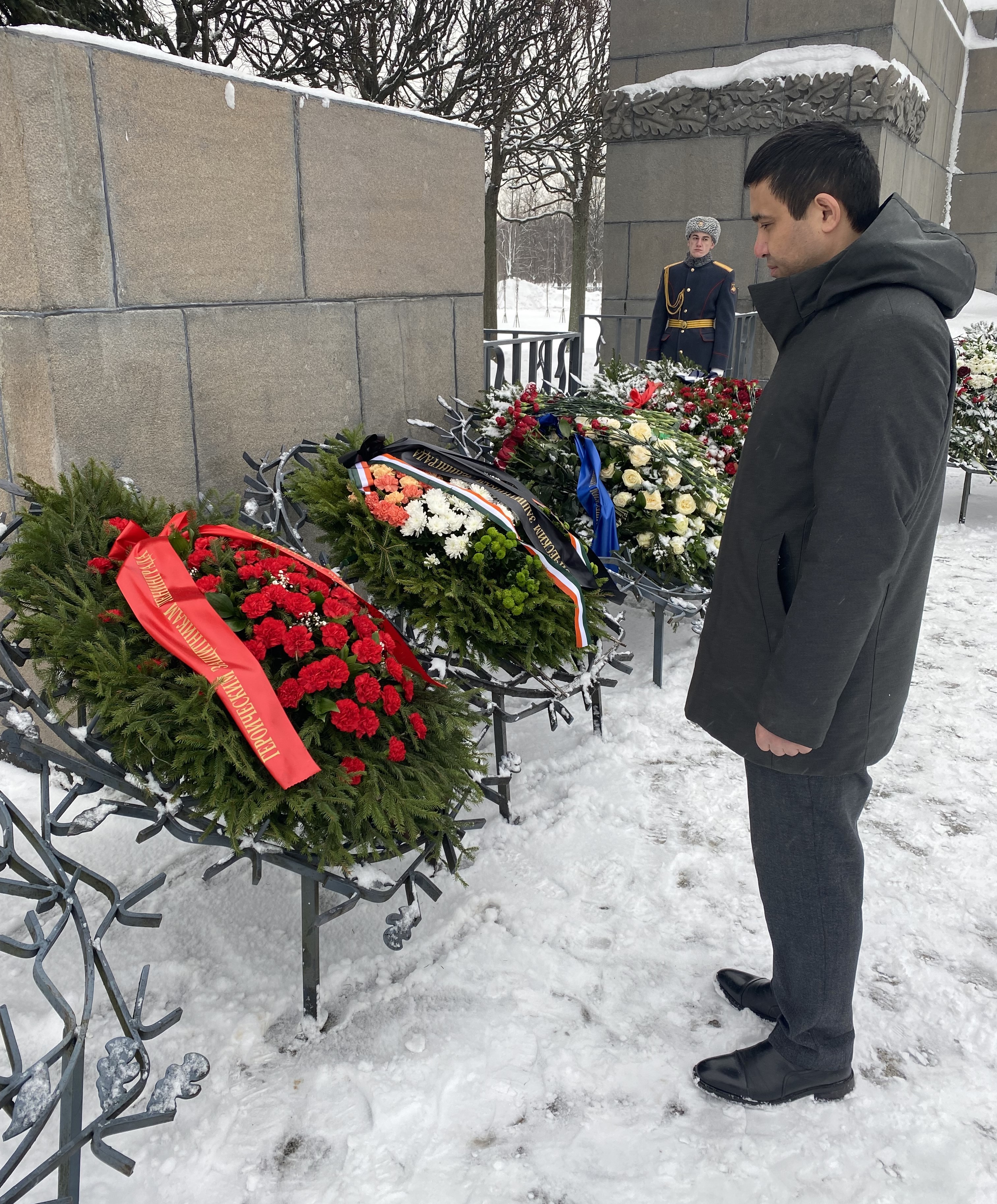 Бишкек, 28.01.22. /Кабар/. Кечээ, 27-январда Кыргызстандын Россиядагы элчилигинин Санкт-Петербург шаарындагы бөлүмүнүн өкүлдөрү 1941-1945-жылдардагы Улуу Ата Мекендик согушта Ленинградды фашисттик блокададан толук бошотуунун 78 жылдыгына карата Пискаревский мемориалдык көрүстөнүнө гүлчамбарларды жана гүлдөрдү коюу боюнча салтанаттуу - аза күтүү аземине катышты. Бул тууралуу элчиликтин басма сөз кызматы билдирет.