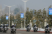 Аба майданында ардактуу кароолдун ротасы тизилип, эки өлкөнүн желектери илинген.