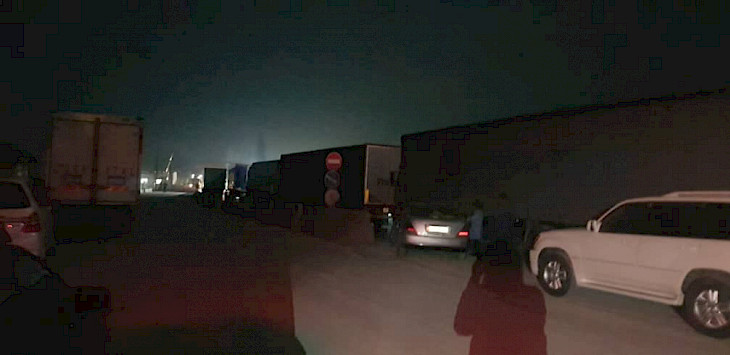 Бүгүнкү эртең мененки саат 09:00гө карата "Ак-Тилек - унаа жолу" пунктунда 90го жакын жүк ташуучу унаа кезекте турган.
