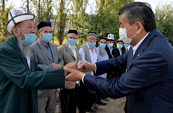 Мамлекет башчысы Ак-Сай айылында жергиликтүү тургундар менен жолугушуудан кийин чектеш Тажикстандын Исфара шаарына Тажикстандын Президенти Эмомали Рахмон менен жолугушууга жөнөдү.