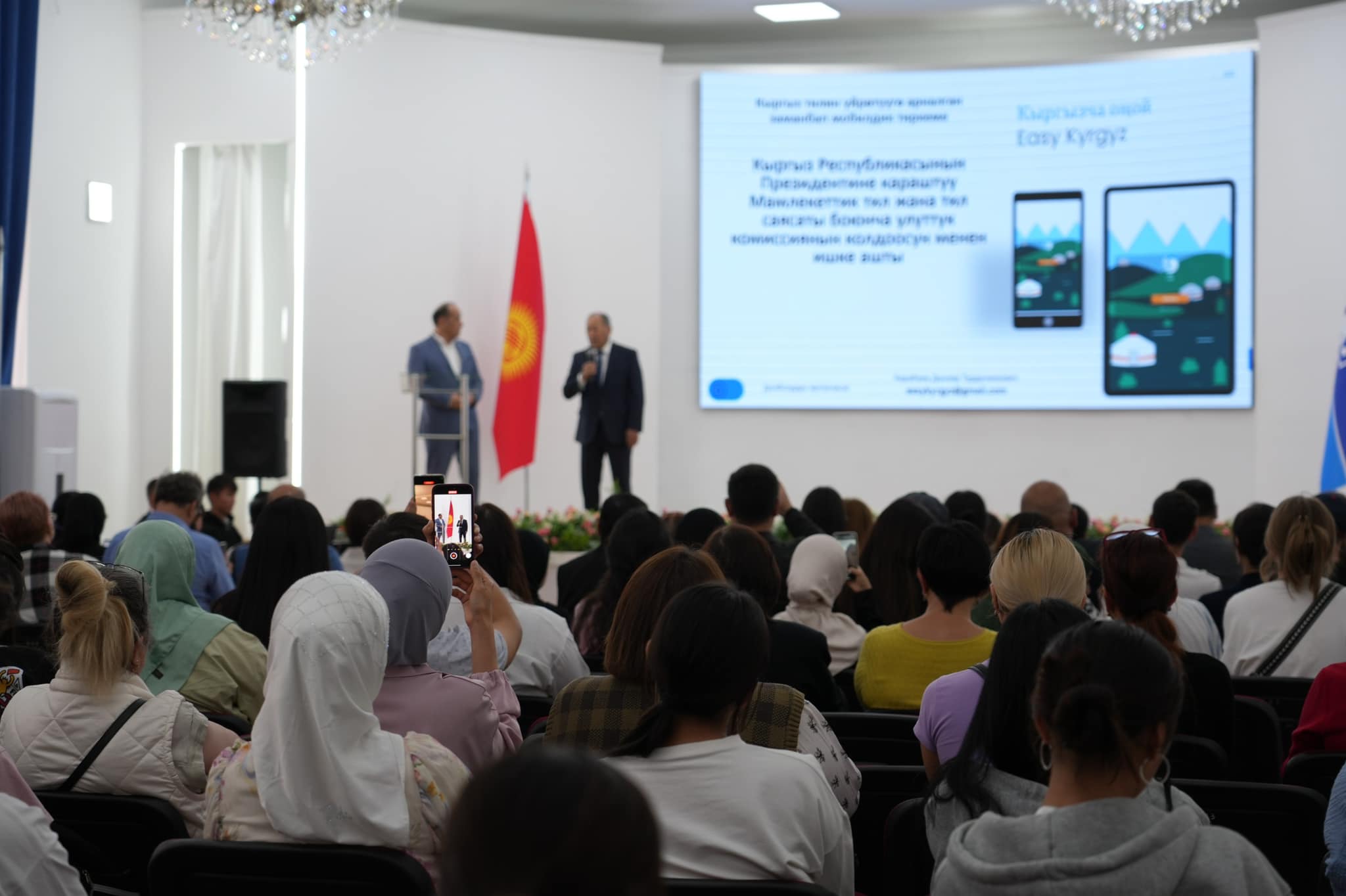 "Кыргызча оңой"/"Easy Kyrgyz" мобилдик колдонмосунун долбоорунун жетекчиси Данияр Карабаев келген конокторго колдонмону көчүрүп алуу жана колдонуу жолдорун түшүндүрүп, интерактивдүү оюндарды өткөрдү.