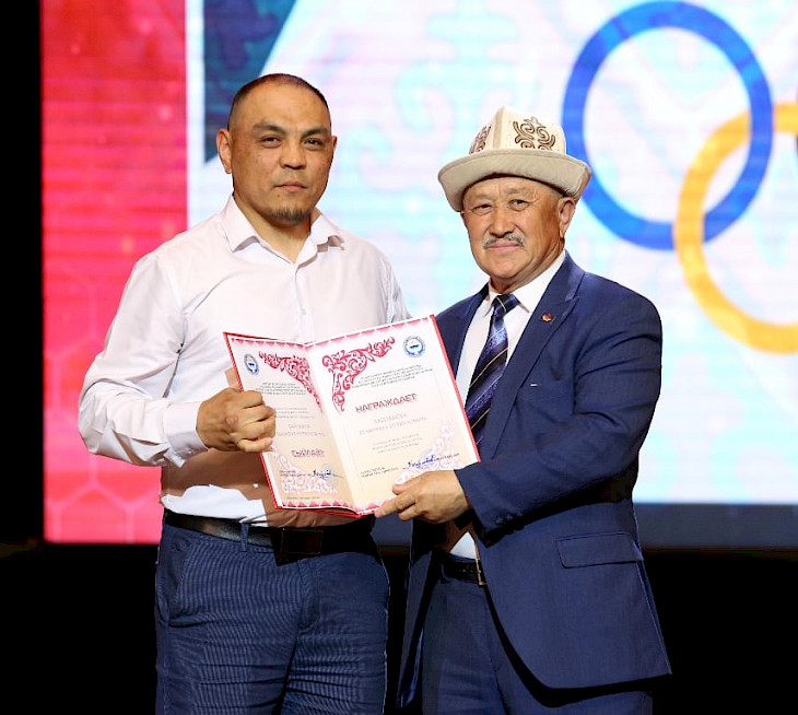 Жаманкулов кыргыз спорту бүгүнкү күндө кандай бийиктиктерге жетип жатканын белгилеп, ушул күнгө чейин өрнөк көрсөтүп келген арадагерлерге ыраазычылык билдирди.