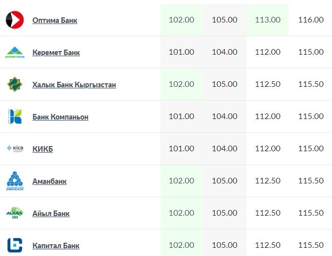 Ал эми евро 115-116 сомго, сатып алуу 112,50 сомго чыкты.