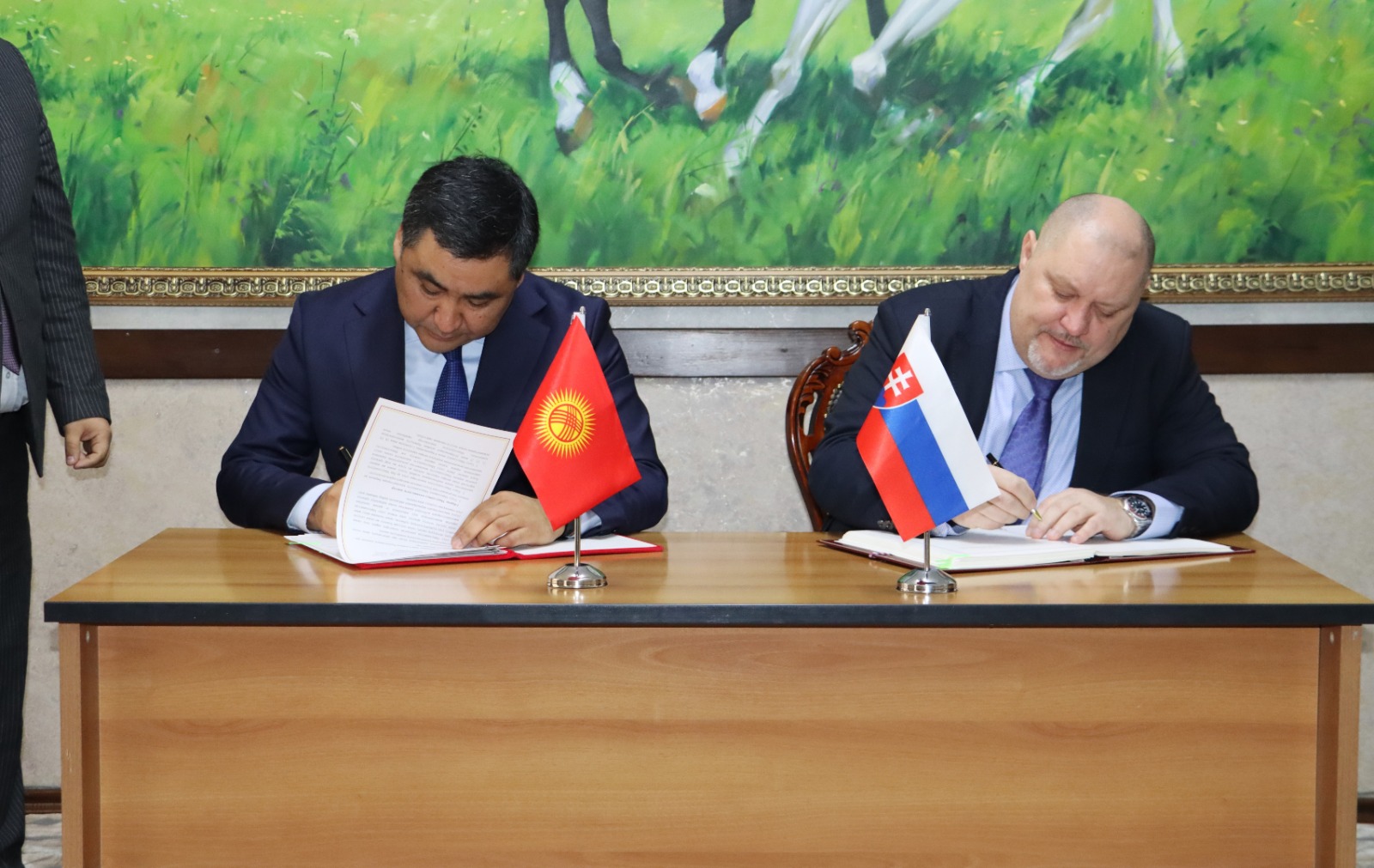 Макулдашууга Кыргызстандын атынан министр Данияр Амангелдиев, Словакиянын атынан аталган өлкөнүн Казакстан жана Кыргызстандагы элчиси Роберт Кирнаг кол койду.