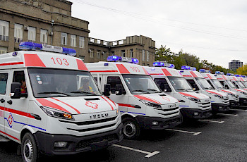 Анын айтымында, унаалардан тышкары көптөгөн керектүү жабдыктар да алынган. Бүгүнкү күндө тез жардам кызматынын базасында 689 унаа бар.