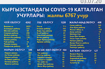 Белгилей кетсек, 24-апрелге карата Кыргызстанда коронавирус жуктурган учурлардын саны 656га жетти. Алардын ичинен 172си медицина кызматкери. Илдеттен 322 жаран айыкса, коронавирус жуктурган 8 адам каза болду.