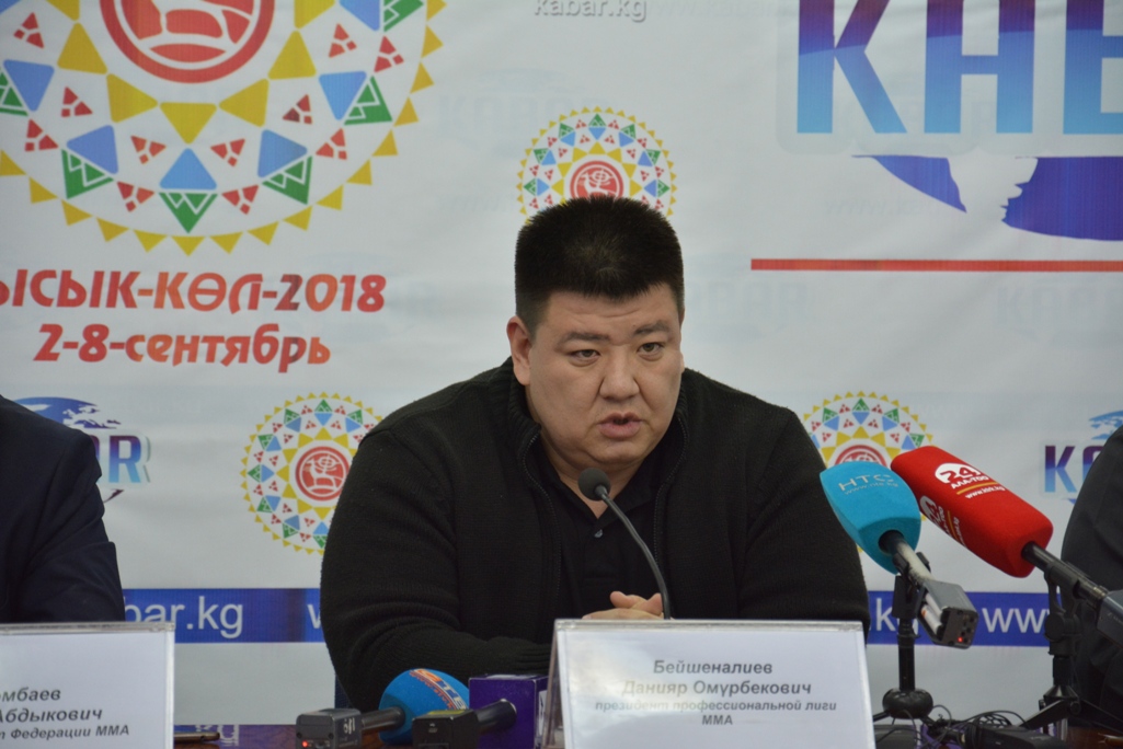 Бишкек, 11.10.18 /Кабар/. Кыргызстанда Professional League-PFL KG - КР ММА боюнча профессионалдуу лига ачылды. Бул тууралуу “Кабар” агенттигинде өткөн маалымат жыйынында ММА профессионалдык лигасынын президенти Данияр Бейшеналиев билдирди.