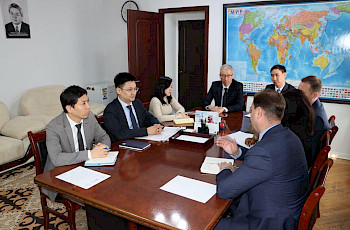 Эль-Кувейт, 20.02.19. /Кабар/. Эль-Кувейт шаарында Инвестицияларды илгерлетүү жана коргоо агенттигинин директору Шумкарбек Адилбек уулу менен «Аль-Шая Групп» компаниясынын аткаруучу төрагасы Стефен Гурманд жолугушту.