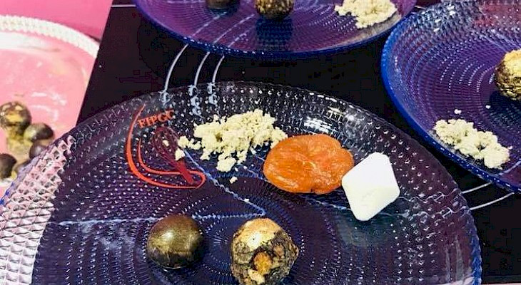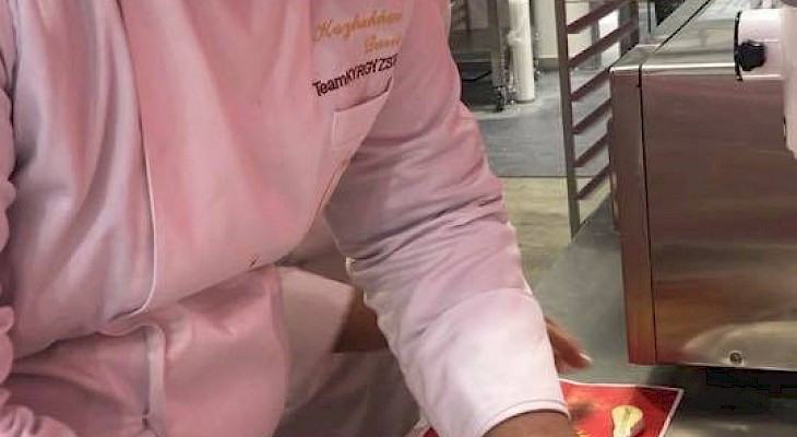 Бишкек, 23.10.17. /Айжамал Дуйшоева - Кабар/. Кыргызстандык кондитерлер Италиядагы кондитерлердин дүйнөлүк биринчилигинде мамлекеттик туу түрүндөгү торт, курут, как жана халва конфеттерин, ошондой эле шоколаддан жасалган улуттук оймо тартуулашты. Бул тууралуу ресторатор Регина Сманова өзүнүн Facebook баракчасына жазып чыкты.