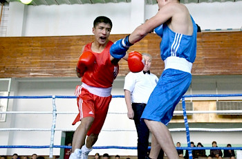 Спортчуну машыктыруучу Куштарбек Таштанбаев коштоп барат.