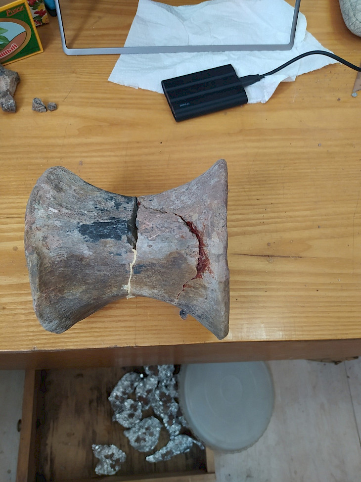 “Калдыктар арасында байыркы жаныбардын шыйрактары жана омурткалары бар. Болжол менен динозаврдын бою 2,5 метр, узундугу 8 метрди түзөт. Казуу иштери немис окумуштуулары тарабынан жүргүзүлүүдө, жакын арада динозаврдын калдыктарынын башка бөлүктөрү табылышы мүмкүн”, - деди окумуштуу.