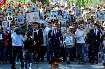 Иш-чаранын алкагында Рустенбеков куттуктоо сөзүн сүйлөп, анда Улуу Ата Мекендик согуштагы Кыргызстандын ролу тууралуу айткан.