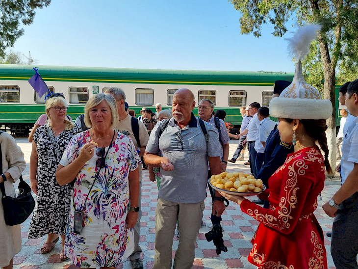 "Кыргыз темир жолу” ишканасы өлкөнүн туристтик потенциалын өнүктүрүүнүн алкагында бул демилгени колдоп, аталган турга ар тараптуу көмөк көрсөтүп, туристтик поезддин өлкө ичинде темир жол менен жүрүү шартын, коопсуздугун камсыздады. Алгач коноктор Германиядан учак менен Алматы шаарына 4-сентябрда, андан соң 5-сентябрда поезд менен Кыргызстанга келишккен.