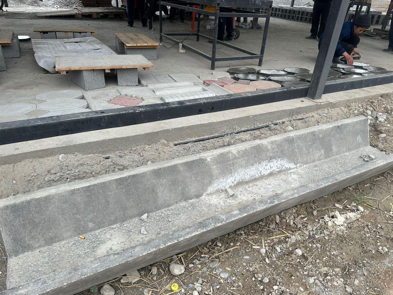 Учурда керектүү бардык жабдуулар орнотулуп,ишкана алгачкы продукцияларын чыгарууда: пескоблок, брусчатка, шакектер, суу ноолору, электр мамычаларынын үлгүлөрү.