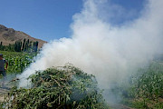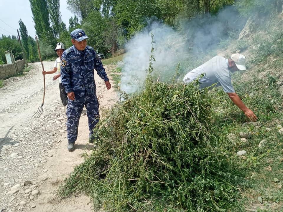 Бишкек, 14.07.21. /Кабар/. Баткендин Лейлек райондук милиция кызматкерлери жергиликтүү бийлик өкүлдөрү менен биргеликте жапайы өскөн кара куурайларды жок кылуу максатында Катраң айыл аймагынын суу жээгинде өскөн кара куурайларды өрттөшүүдө.