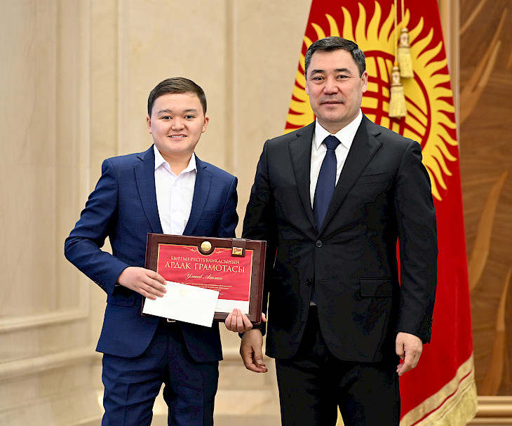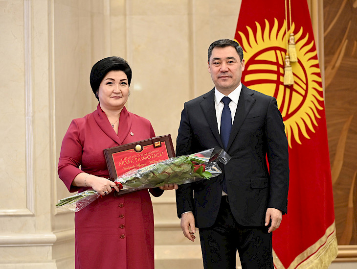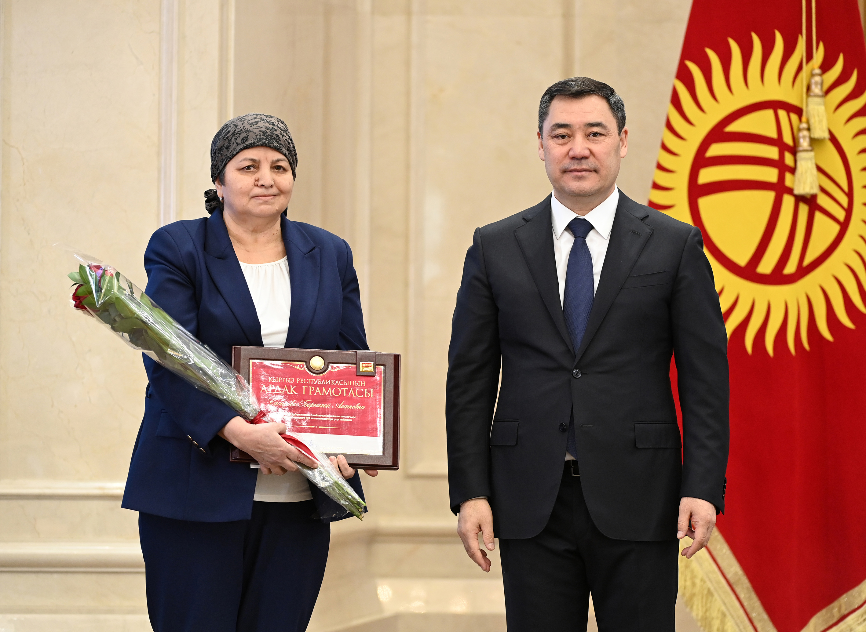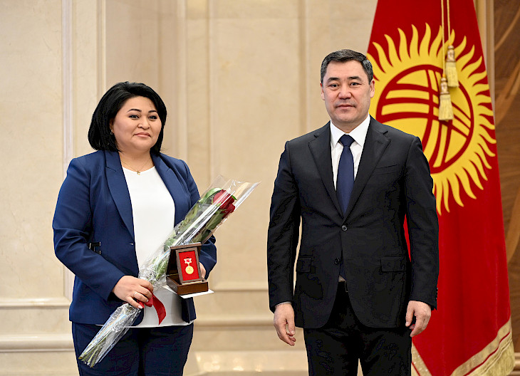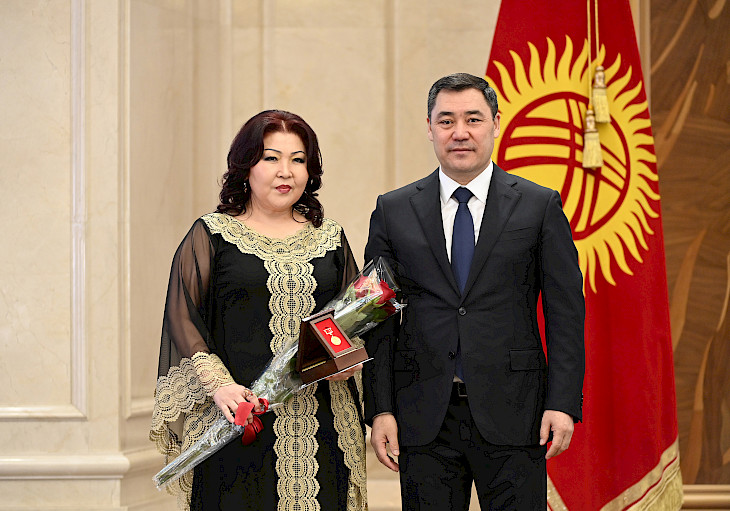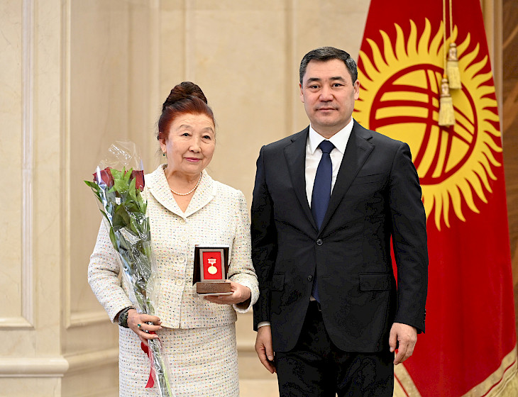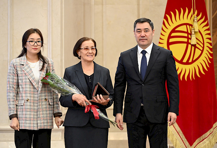 Бишкек, 10.02.22. /Кабар/. Бүгүн, 10-февралда, президент Садыр Жапаров өлкөнүн социалдык-экономикалык, интеллектуалдык жана маданий потенциалын өнүктүрүүгө олуттуу салым кошкон, ошондой эле кесиптик ишмердүүлүгүндө жогорку жетишкендиктерге жетишкен жарандарга мамлекеттик сыйлыктарды тапшырды. Бул тууралуу президенттин басма сөз кызматы билдирет.